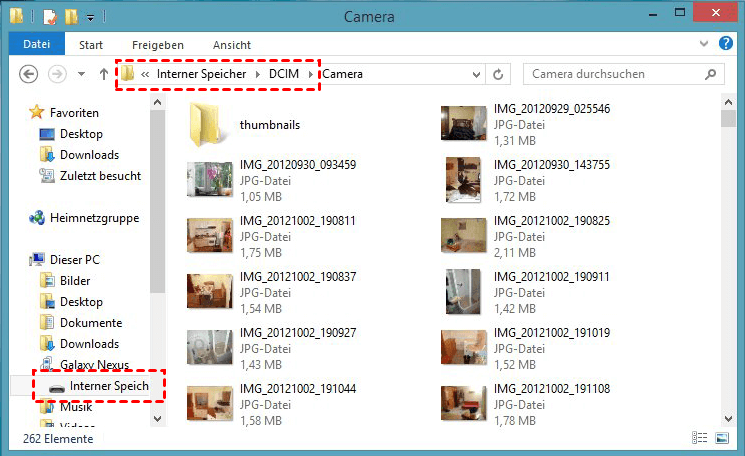 Schritt 3. Gehen Sie auf dem Laptop zu Interner Speicher > DCIM. Klicken Sie auf den Ordner, um die Bilder zu sehen.