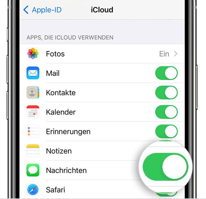 > Nachrichten in iCloud ausschalten