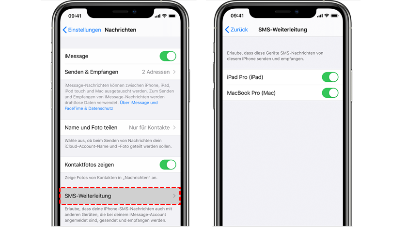 Wenn die Weiterleitung von Textnachrichten aktiviert ist, werden die SMS/MMS-Nachrichten, die Sie auf dem iPhone senden und empfangen, auf dem iPad angezeigt. Stellen Sie also sicher, dass diese Funktion deaktiviert ist, wenn Sie keine Nachrichten zwischen iPhone und iPad austauschen möchten.