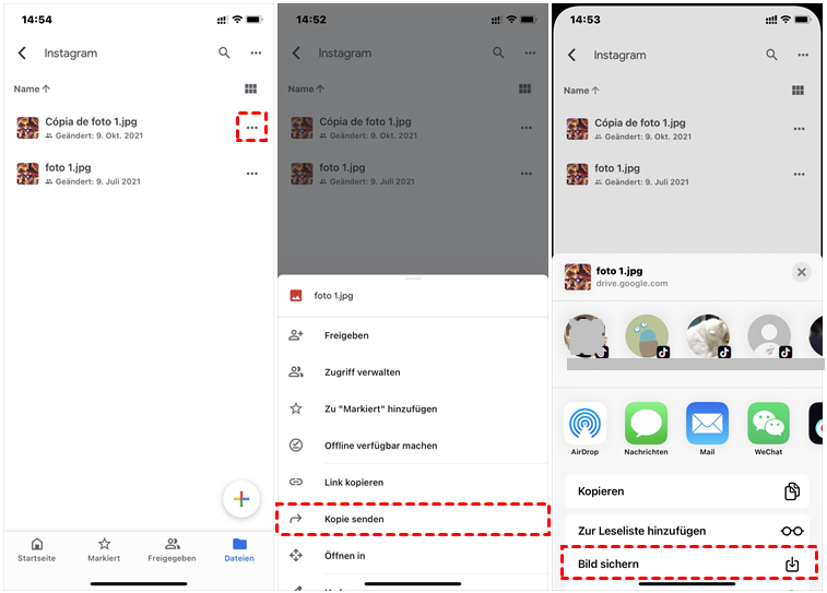 Auf dem iPhone: Gehen Sie zum App Store, um Google Drive zu erhalten > Melden Sie sich bei Ihrem Konto an > Suchen Sie die zuvor hochgeladenen Dateien und laden Sie sie auf das iPhone herunter.
