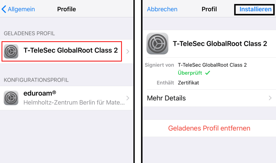 Gehen Sie zu: Einstellungen > Allgemein > Profile > Profil entfernen.