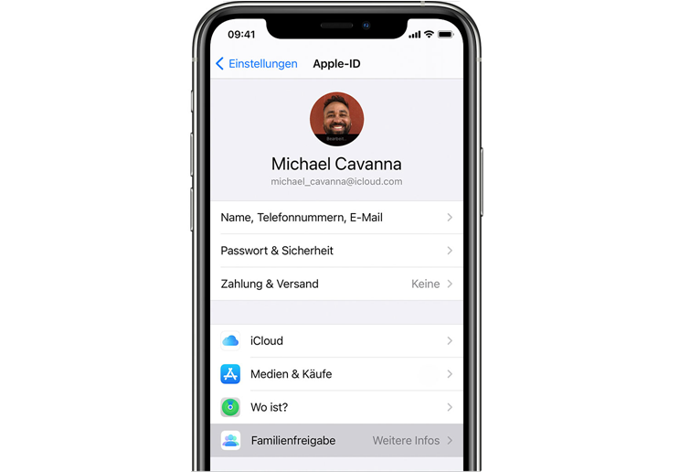 ① Mit Familienfreigabe können Sie Einkäufe nur mit maximal fünf Familienmitgliedern teilen.