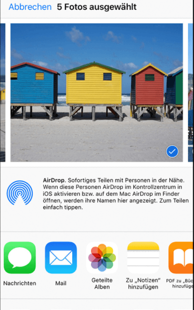 ※ Hinweis: AirDrop teilt jedes Mal nur wenige Fotos, sonst läuft es nicht so gut.