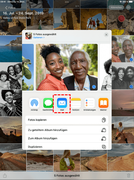 Methode 4. Per E-Mail Fotos von iPad zu iPad übertragen