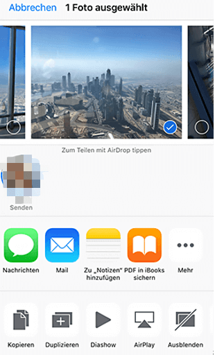 Schritt 3. Klicken Sie unten links auf „Teilen“ > Wählen Sie „Airdrop“ oder „Mail“.
