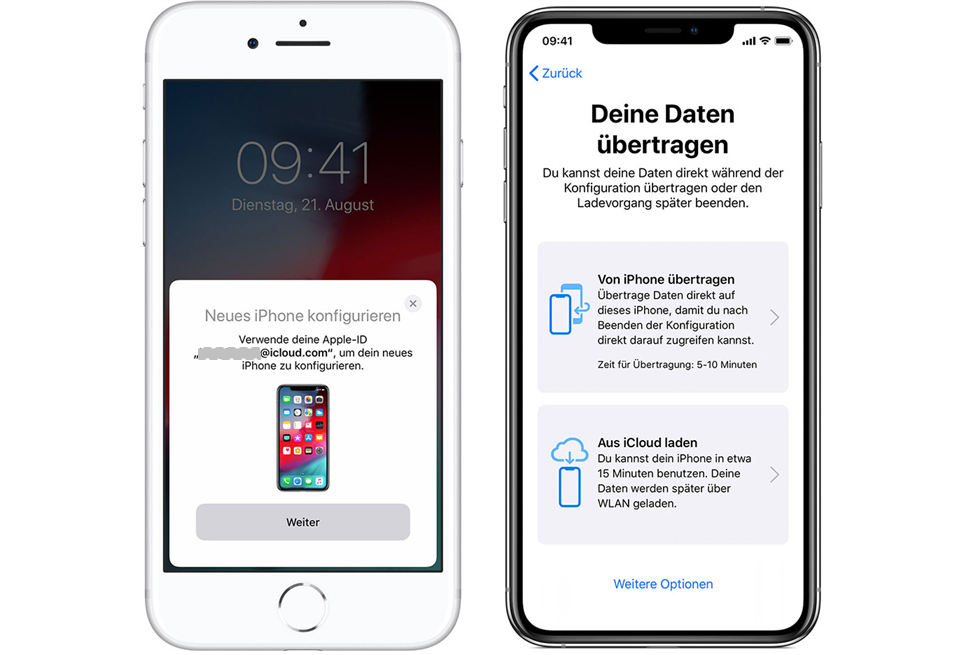 Wenn Sie der Erfolgsquote der iCloud-Synchronisierung nicht trauen und Ihr neues iPhone noch nicht eingerichtet haben, können Sie auch die neue Funktion des iPhones verwenden - Schnellstart.