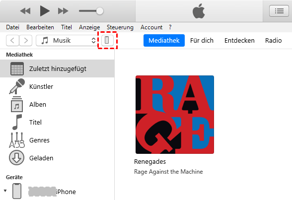 Schritt 1. Starten Sie iTunes und verbinden Sie Ihr altes iPhone mit Ihrem PC > Klicken Sie auf das Gerätesymbol.