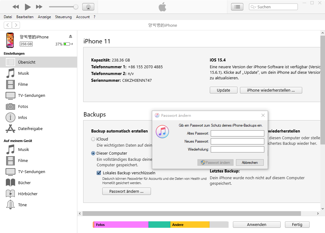 Das iTunes-Backup wird standardmäßig nicht verschlüsselt, und ein nicht verschlüsseltes Backup deckt Ihre Health Daten nicht ab, aber Sie können die Backup-Verschlüsselung manuell aktivieren.
