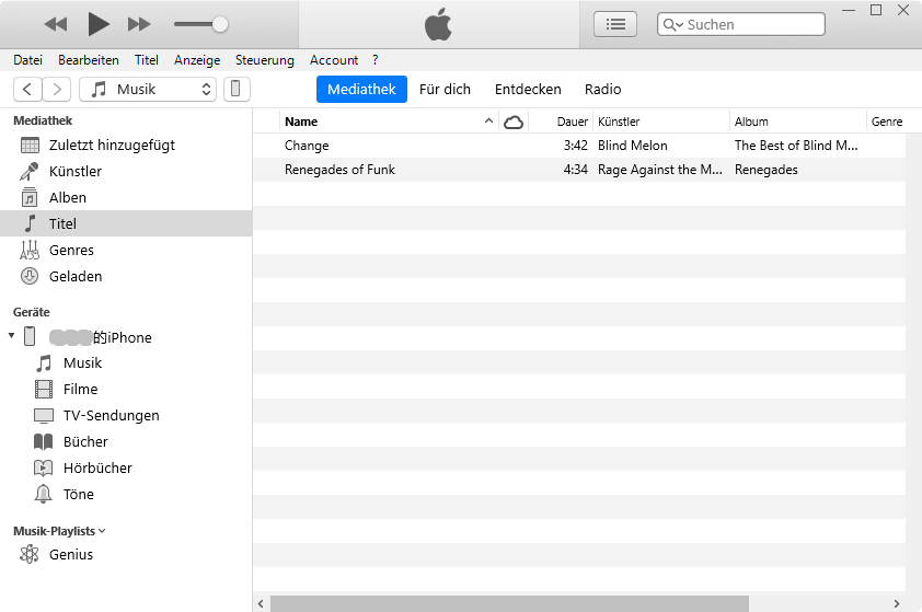 Wenn sich Ihre Musiktitel bereits in der iTunes-Mediathek befinden, fahren Sie bitte mit dem nächsten Schritt fort.