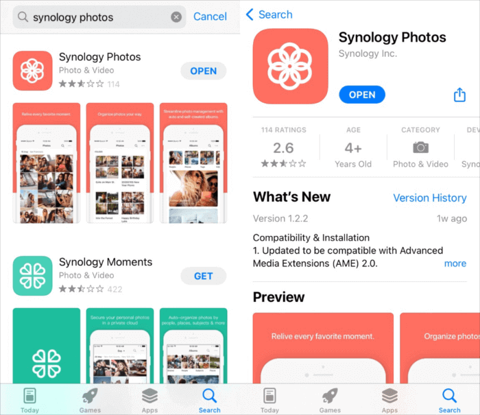 - Laden Sie Synology Photos aus dem App Store auf Ihr iPad herunter.