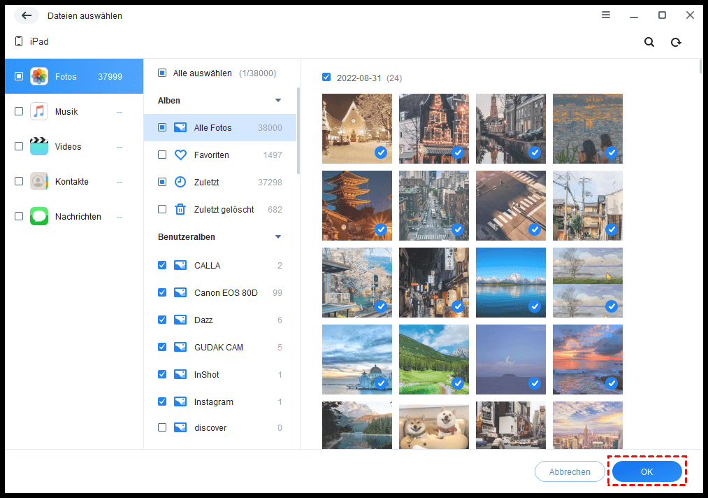 Bevor Sie mit dem Backup von iPad Fotos beginnen: