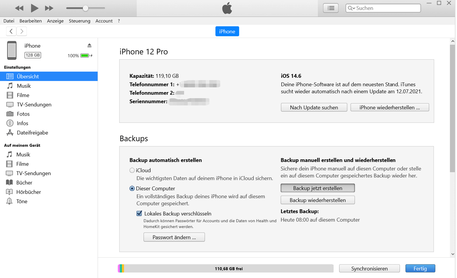 Weg 1. Über iTunes iPhone auf USB-Stick sichern