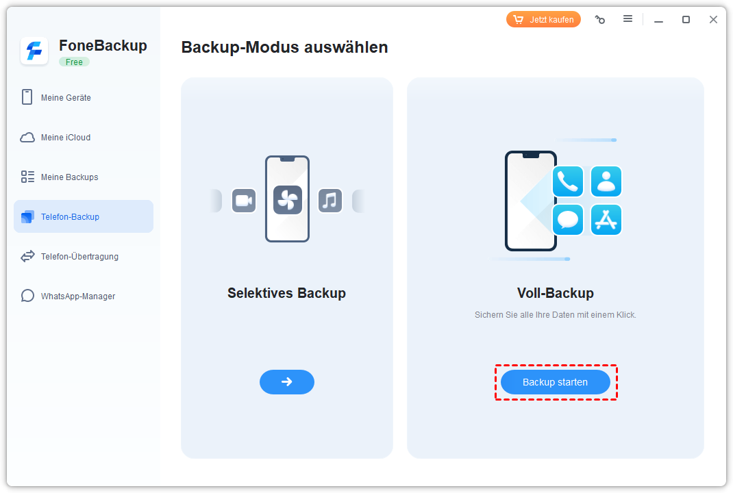 2. Sie können das Funktionsfeld auf der linken Seite „Telefon-Backup“ > „Voll-Backup“ auswählen.
