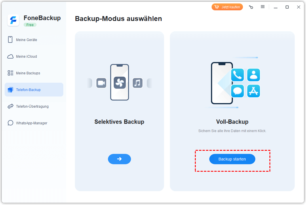 Schritt 2. Klicken Sie unter Telefon-Backup auf Voll-Backup in der Startoberfläche.