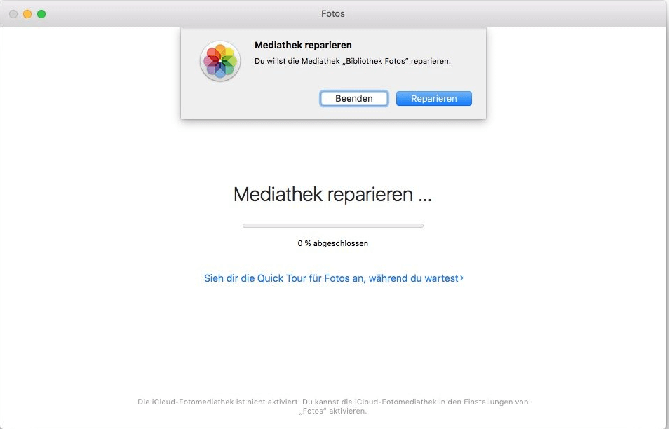 Schritt 1. Beenden Sie Fotos auf dem Mac > Starten Sie Fotos erneut und drücken Sie sofort die Befehlstaste + Wahltaste.