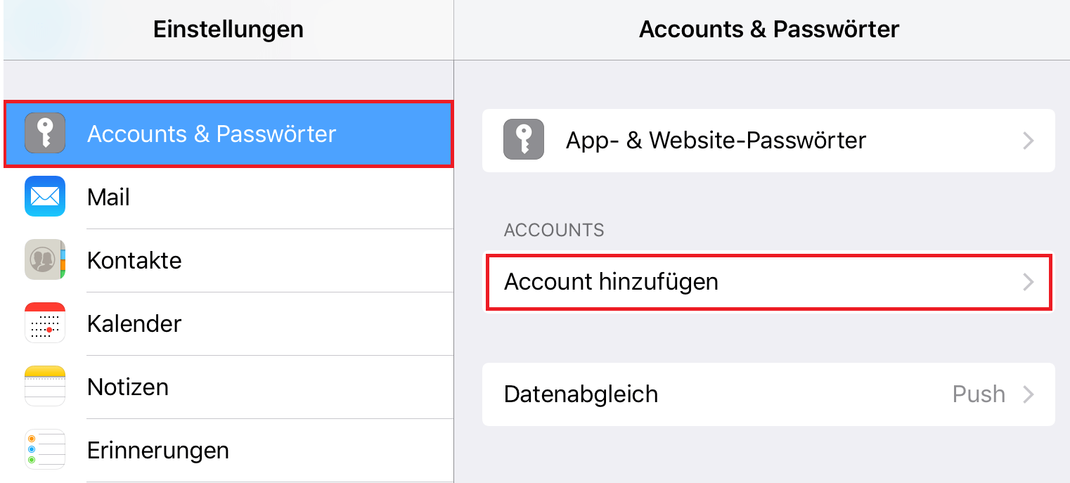 Schritt 1. Gehen Sie zu Einstellungen > Scrollen Sie nach unten und wählen Accounts & Passwörter.