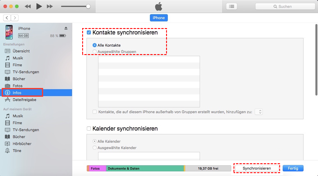 Methode 2. Über iTunes iPhone Kontakte sichern ohne iCloud