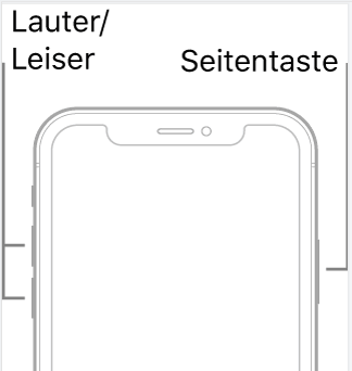 Drücken Sie die Lautstärke+ Taste und lassen Sie sie dann schnell los > Drücken Sie die Lautstärke- Taste und lassen Sie sie dann schnell los > Drücken Sie die Seitentaste für einige Sekunden, bis Sie das Apple-Logo sehen.