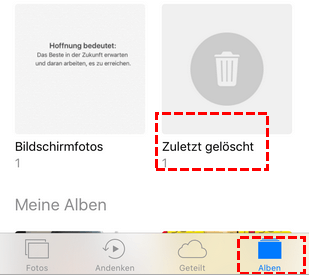 3. Wählen Sie „Zuletzt gelöscht“, um die soeben gelöschten Fotos zu überprüfen und die dann erneut zu löschen.