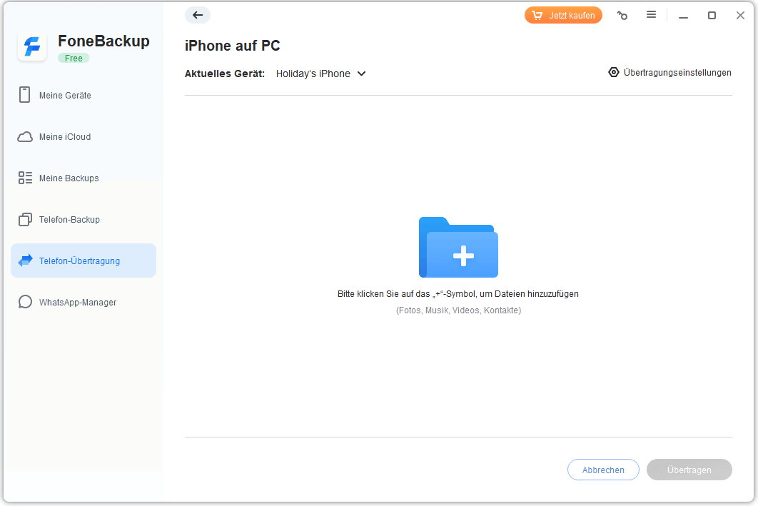 ① Neben Datenübertragung unterstützt es auch iPhone-Backup. Sie können iPhone Daten auf dem PC, USB-Stick sichern, dann wiederherstellen.