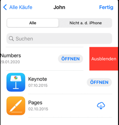 Apps in der Kaufhistorie ausblenden
