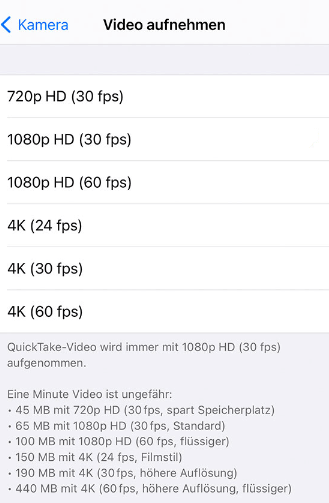 iPhone Video kann nicht geladen werden höhere Qualität? Wenn Sie Ihr iPhone auf die Aufnahme von 4K-Videos eingestellt haben, kann es einige Zeit dauern, bis die Videos auf Ihrem iPhone geladen sind. Wenn Sie mit einer niedrigeren Videoqualität leben können, können Sie die Einstellungen so ändern, dass 1080p-Videos aufgenommen werden.