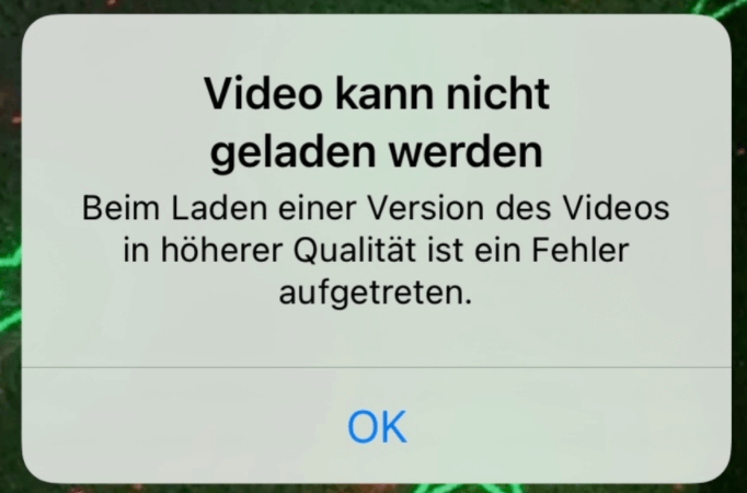 Beim Versuch, meine Videos zu laden, erhalte ich eine Fehlermeldung: „Beim Laden einer Version dieses Videos in höherer Qualität ist ein Fehler aufgetreten“. Hat jemand eine Lösung? Oder kennen Sie dieses Problem?