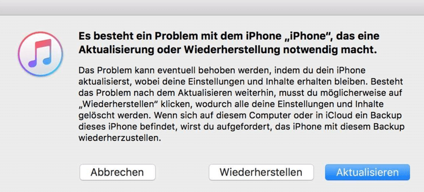 Das Wiederherstellen des iPhone mit iTunes kann das Problem lösen. Wenn Sie ein vorheriges Backup haben, können Sie Ihr iPhone anschließen und Wiederherstellung durchführen.