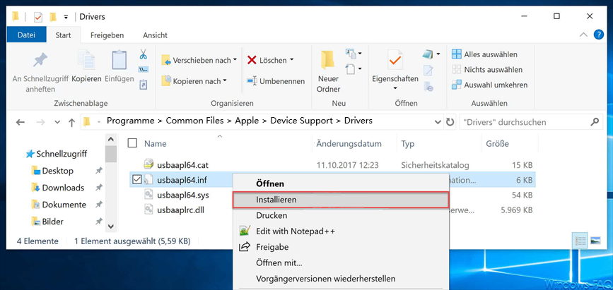 Schritt 3. Suchen Sie die Datei „usbaapl64.inf“ oder „usbaapl.inf“, klicken Sie mit der rechten Maustaste darauf und wählen Sie Installieren.