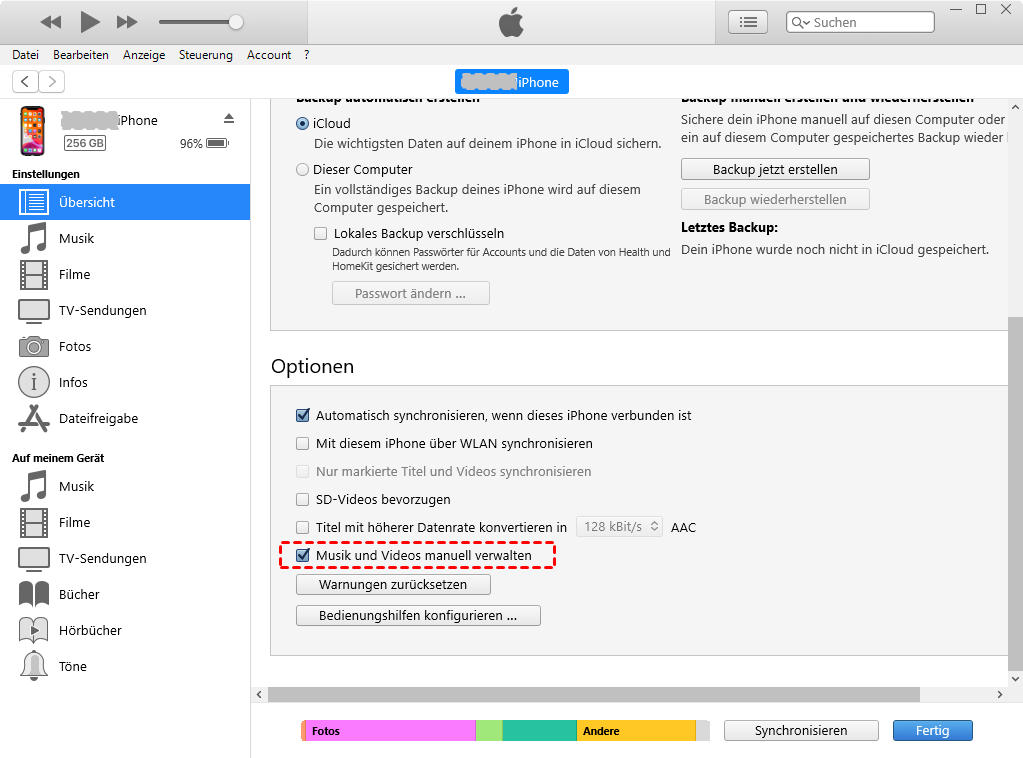 iTunes Synchronisieren unter Windows 10 ausgegraut