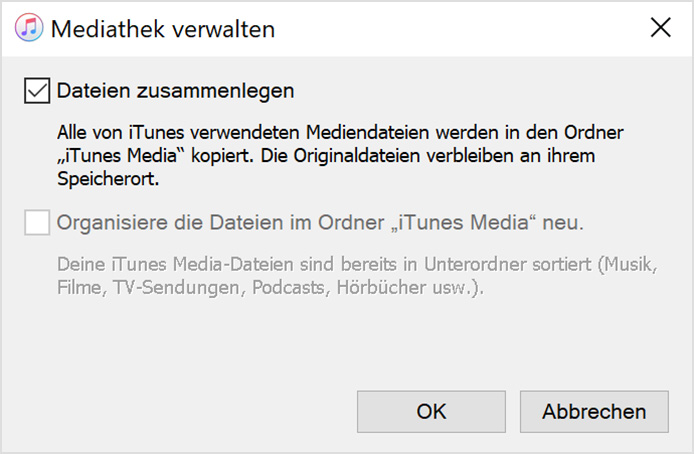 - Lösung 2. iTunes-Mediathek konsolidieren