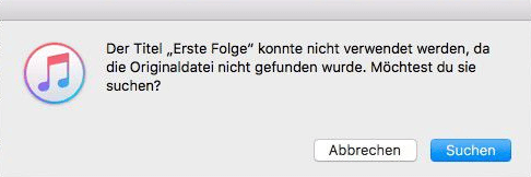 iTunes Fehler: Originaldatei wurde nicht gefunden