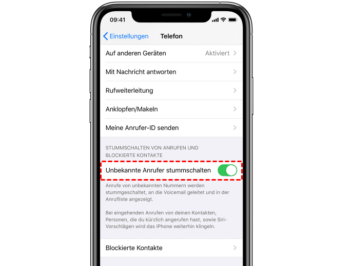 Lösung 4. Deaktivieren Sie Unbekannte Anrufer stummschalten