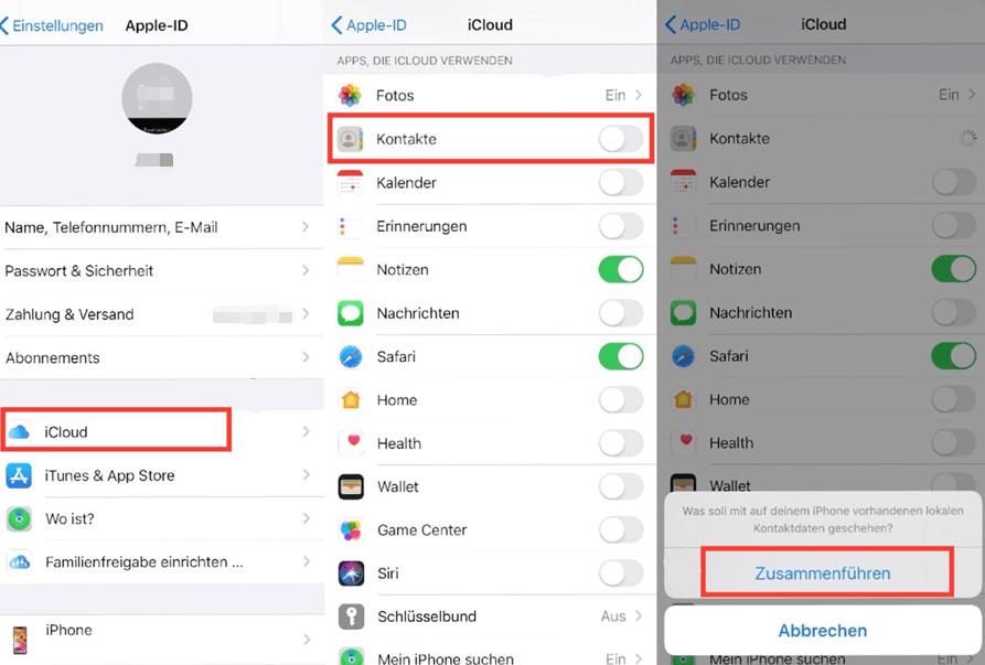 Weg 4. Über iCloud Kontakte auf anderes iPhone übertragen