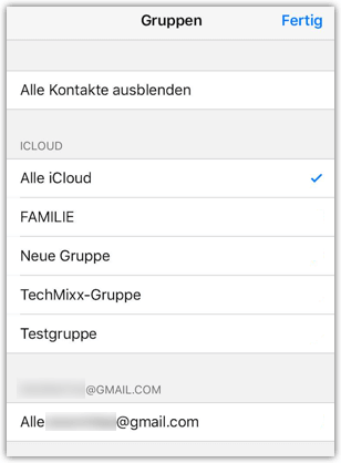 Öffnen Sie Kontakte > Tippen Sie oben links auf Gruppen > Deaktivieren Sie alles außer der Option Alle iCloud > Tippen Sie auf Fertig. Ihre Kontakte werden nur Kontakte aus Ihrem iCloud-Konto abrufen.