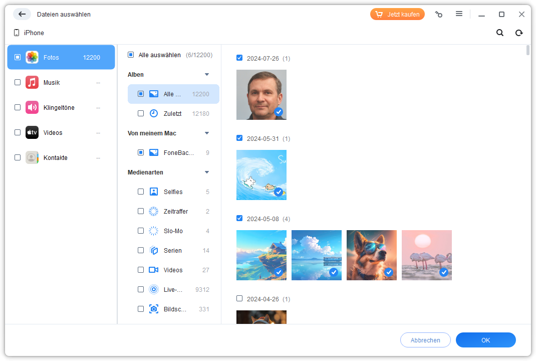 Außerdem können Sie mit FoneBackup Daten wie Fotos, Videos und Musik, Kontakte usw. auf das neue iPhone übertragen. Das Tool kann auch iPhone Musik sichern.