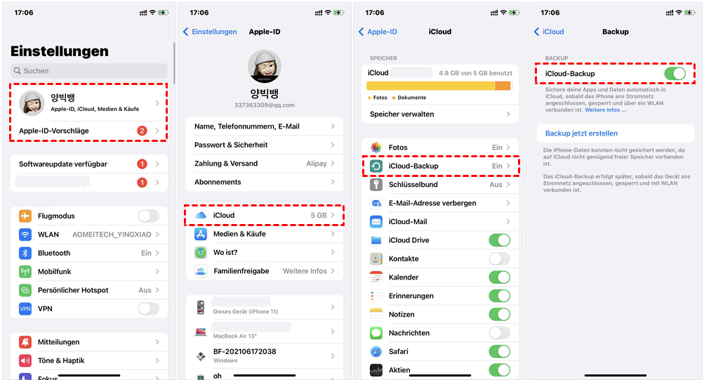 Gehen Sie auf Ihrem alten iPad zu „Einstellungen“ > „Ihr Name“ > „iCloud-Backup“ > „Backup“ > Aktivieren Sie das „iCloud-Backup“ > Backup jetzt erstellen.