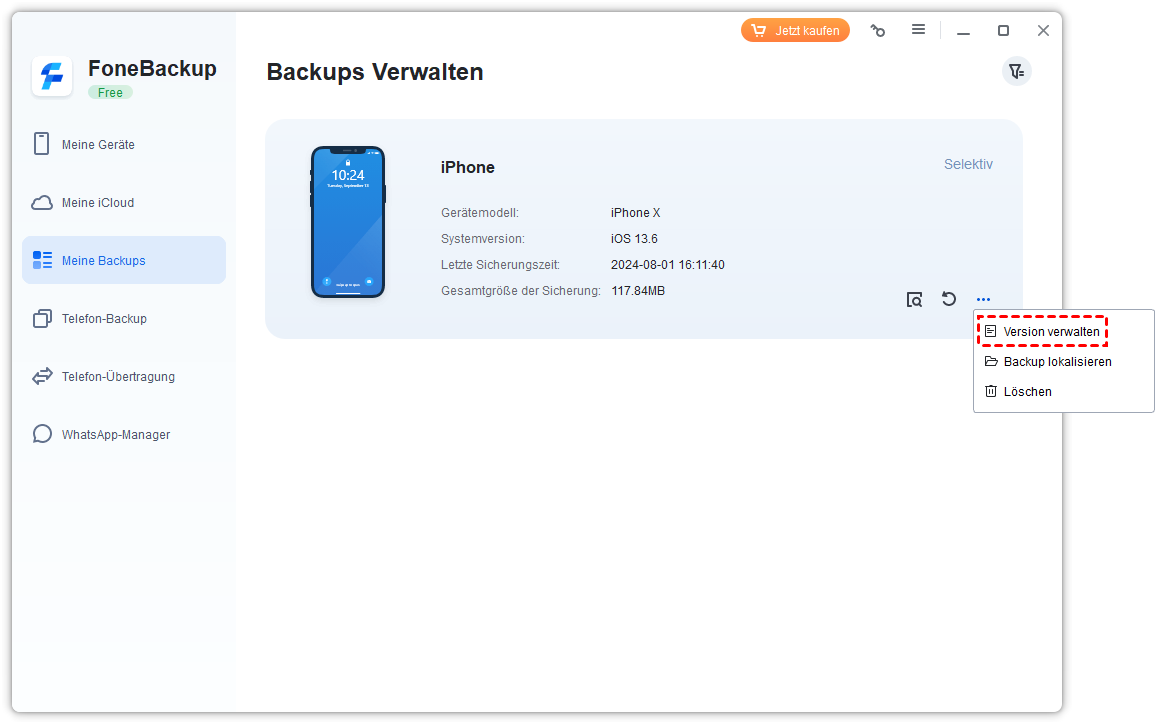 Schritt 2. Klicken Sie auf Telefon-Backup > Gehen Sie zu Selektivs Backup und klicken auf Backup starten.