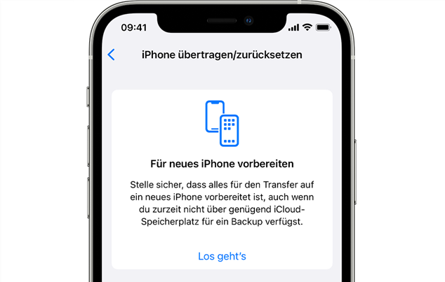 Schritt 2. Wählen Sie unter „Für neues iPhone vorbereiten“ die Option „Los geht's“.
